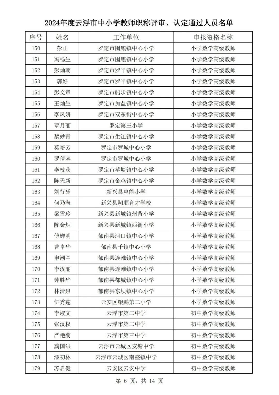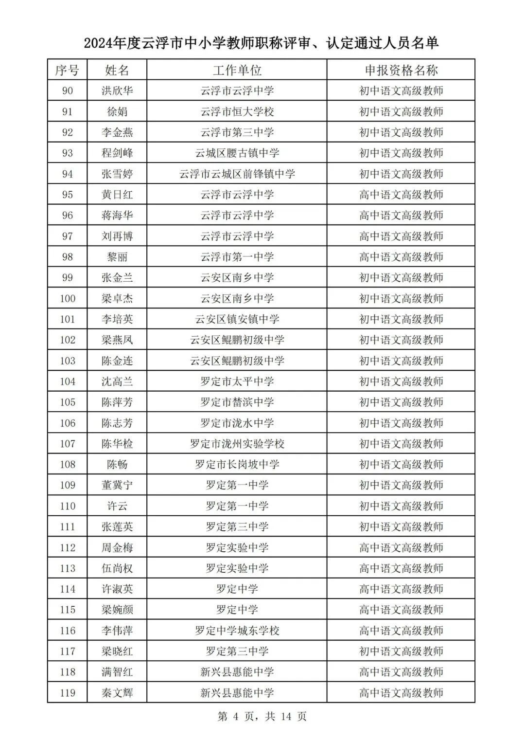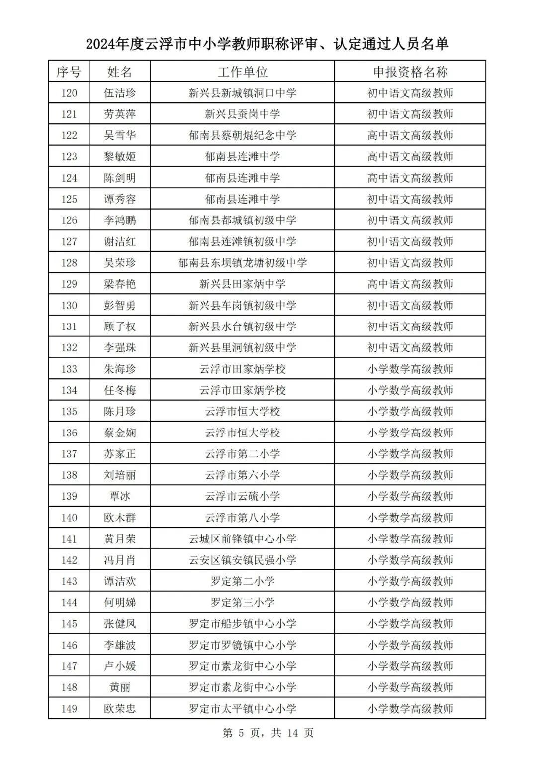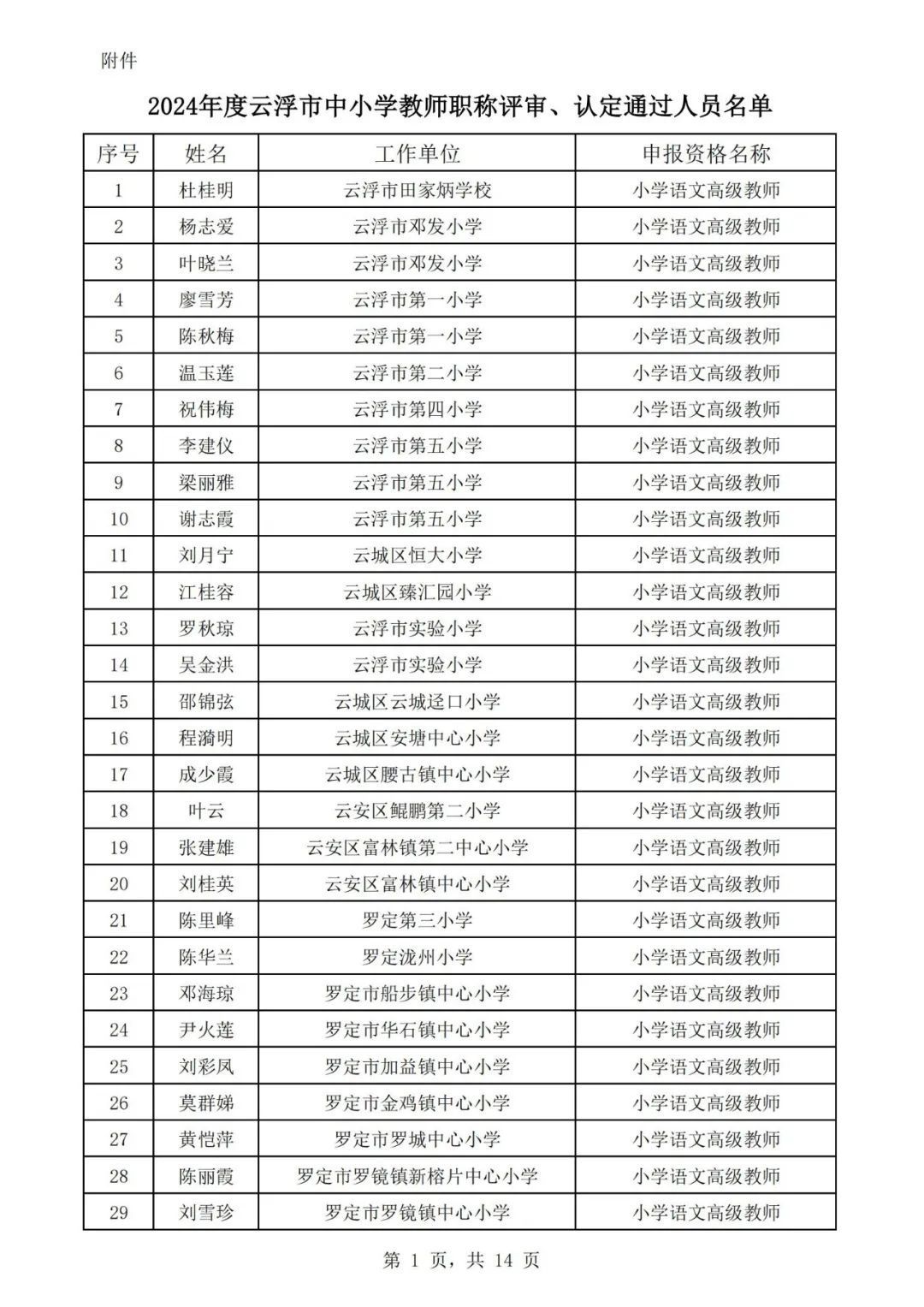 附件:2024年度云浮市中小学教师职称评审认定通过人员名单