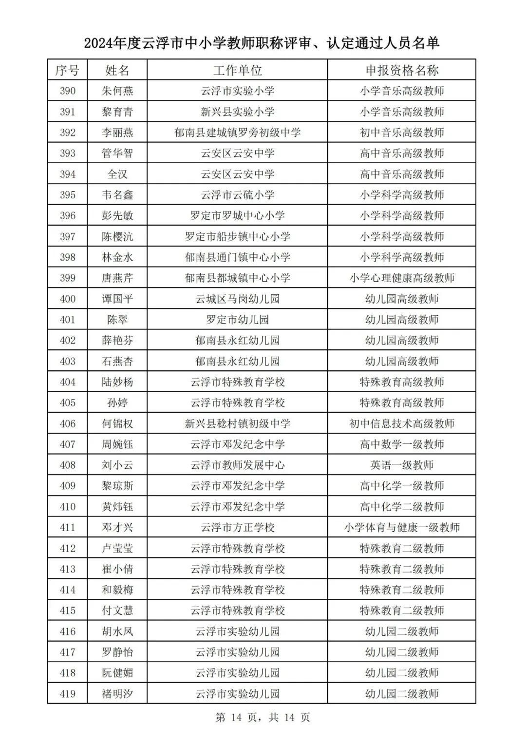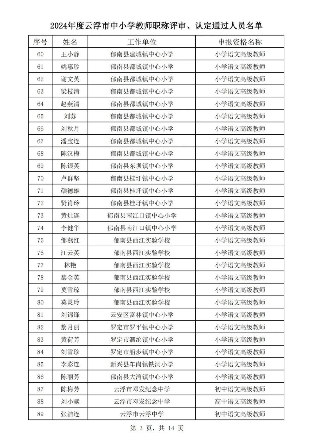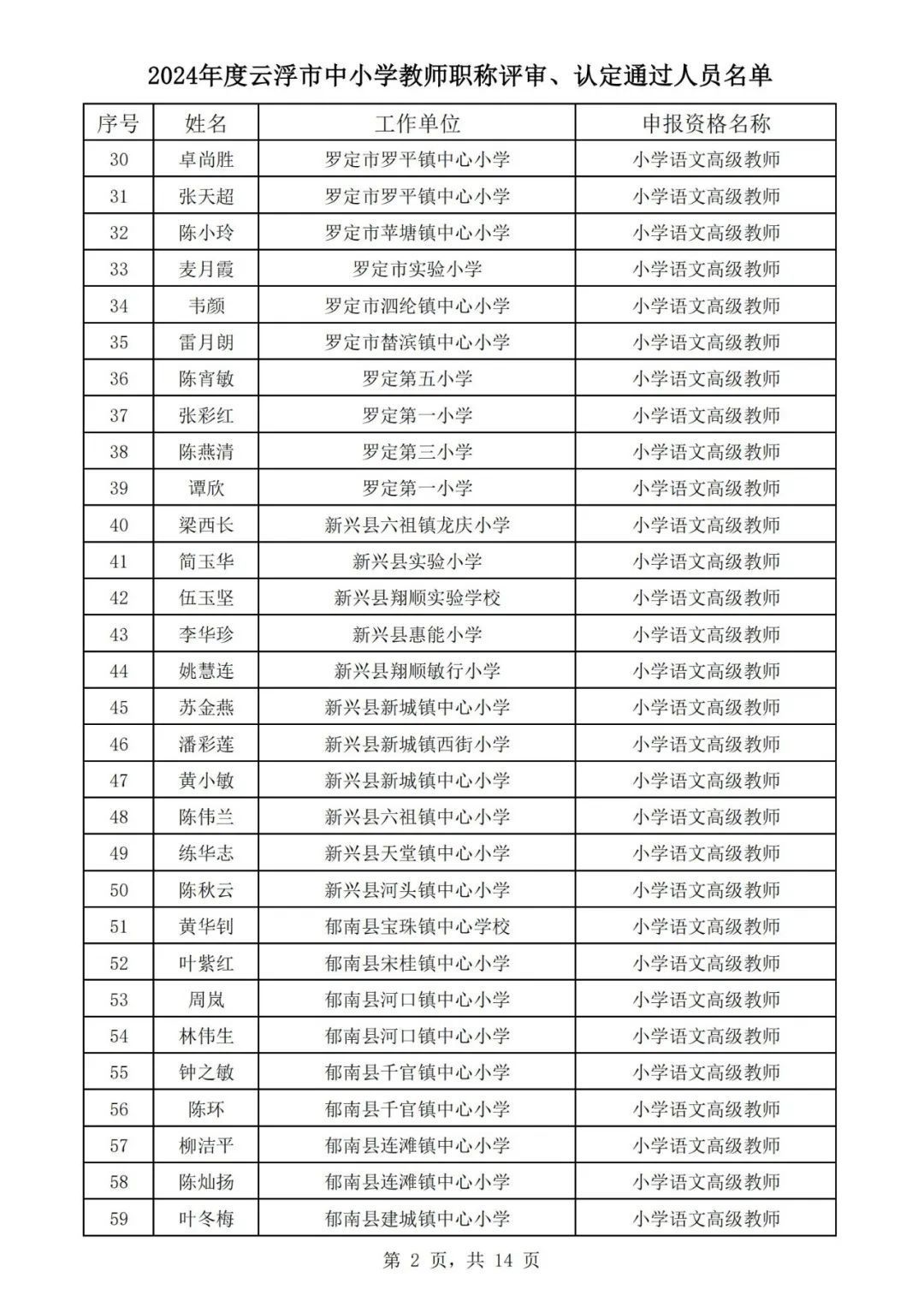 附件:2024年度云浮市中小学教师职称评审认定通过人员名单