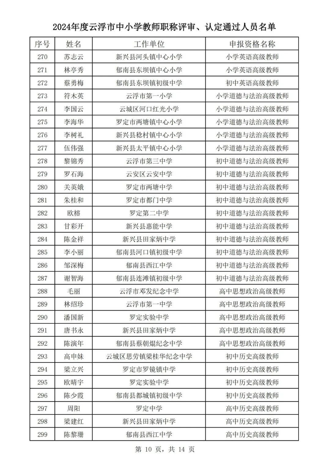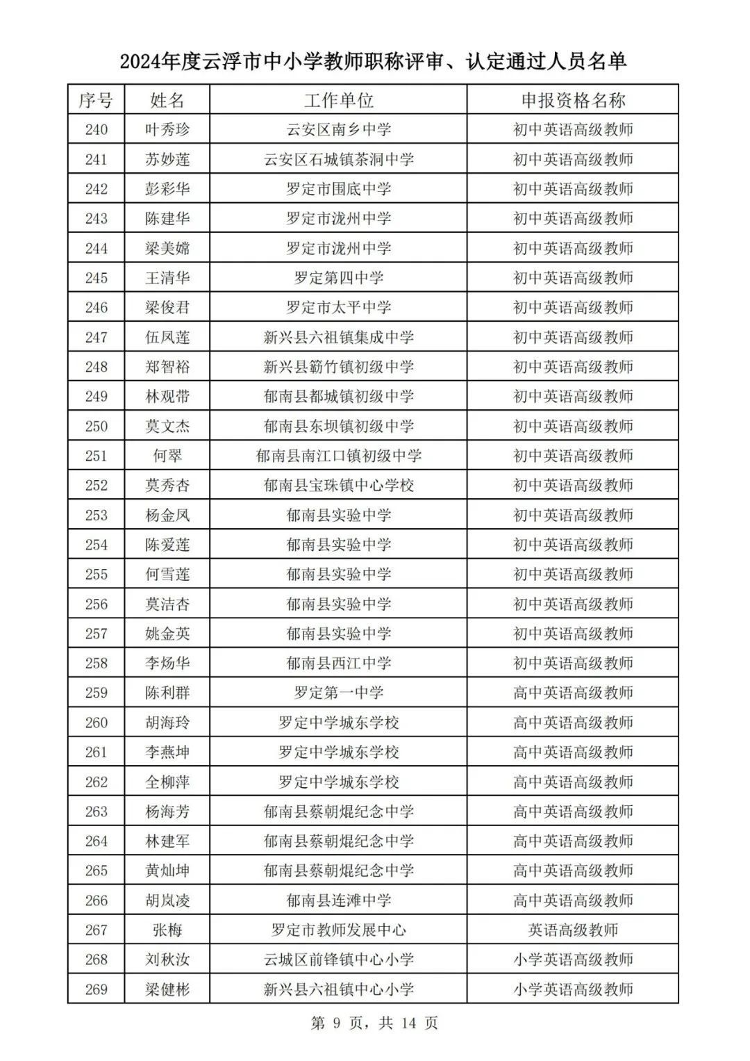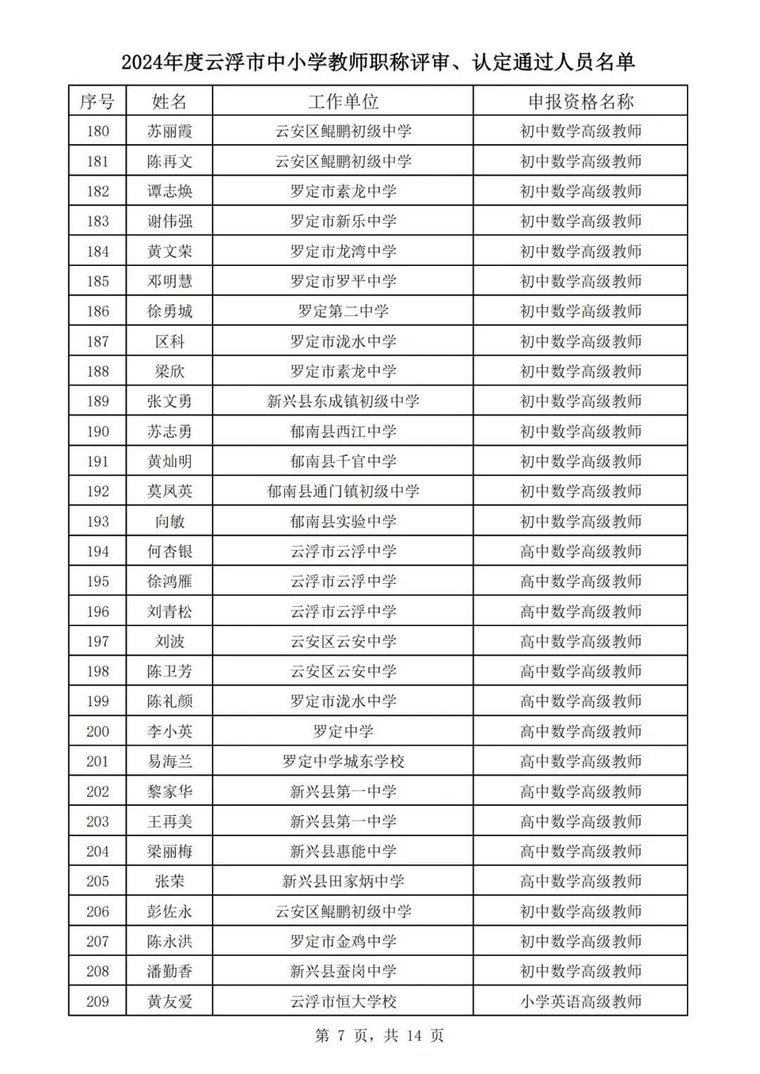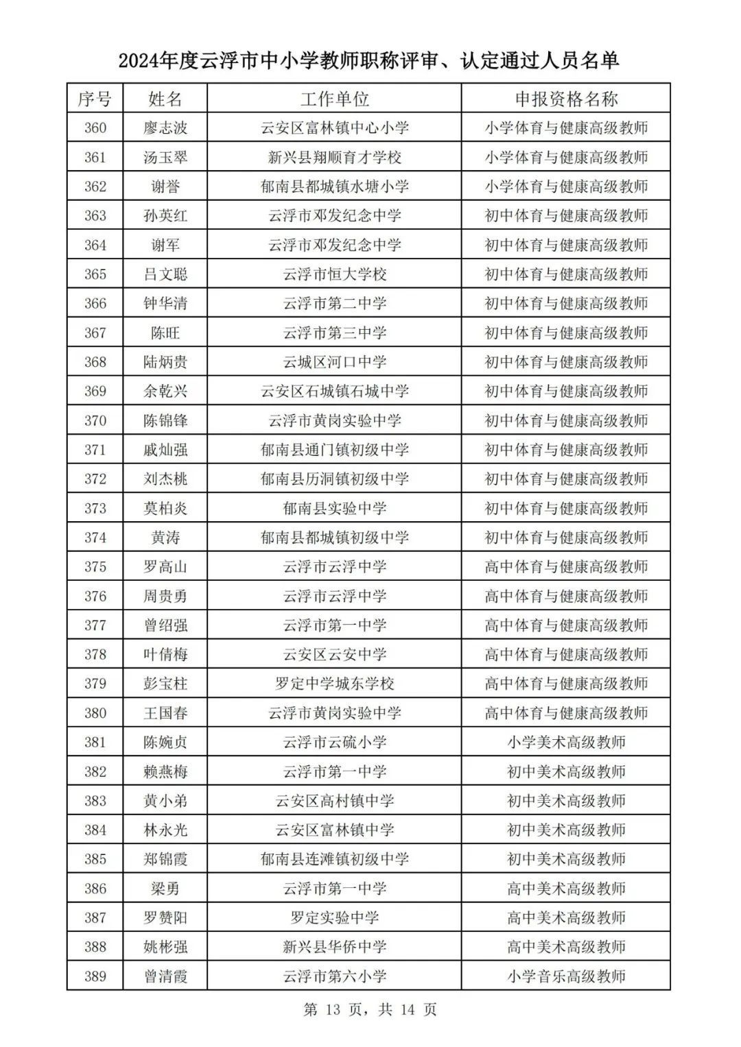 附件:2024年度云浮市中小学教师职称评审认定通过人员名单