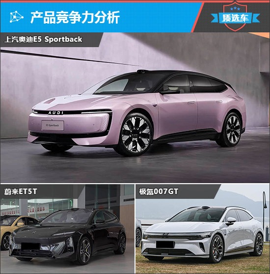 在市场层面,奥迪E5 Sportback作为纯电中型车,以其独特的瓦罐造型为标签。从定位与形态来看,其主要竞争对手应指向蔚来ET5T和极氪007GT。