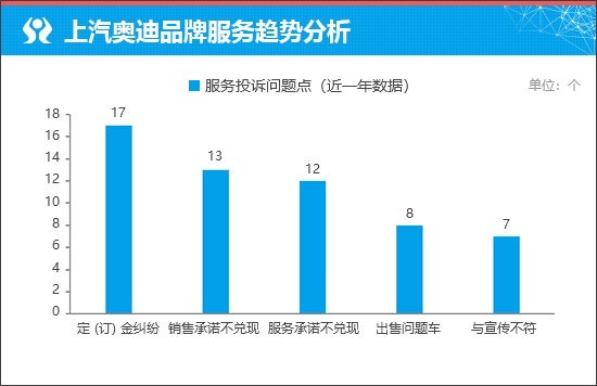 从服务投诉问题点来看,主要集中在“定(订)金纠纷”方面。通过进一步分析可知,投诉问题来自奥迪A7L、奥迪A5L Sportback以及奥迪Q6车型。